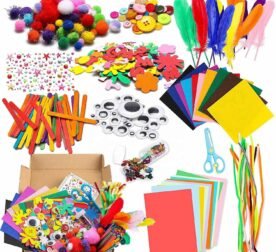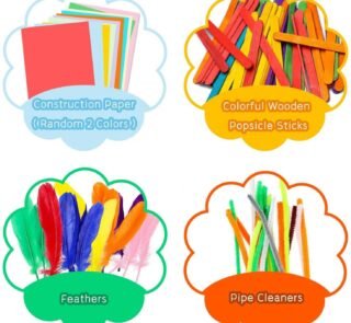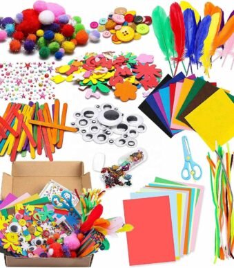 1000Pcs DIY Art Craft Sets Supplies for Kids Crafting Supplies Kits Pipe Cleaners-Colour Felt- Glitter Poms- Feather-Buttons